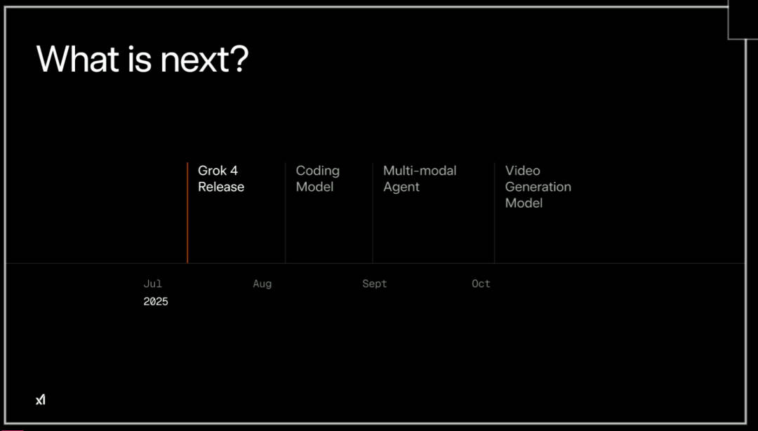 此前传闻的 Grok 4 Code 并未正式公布,但 xAI 路线图显示其将在 8 月发布。