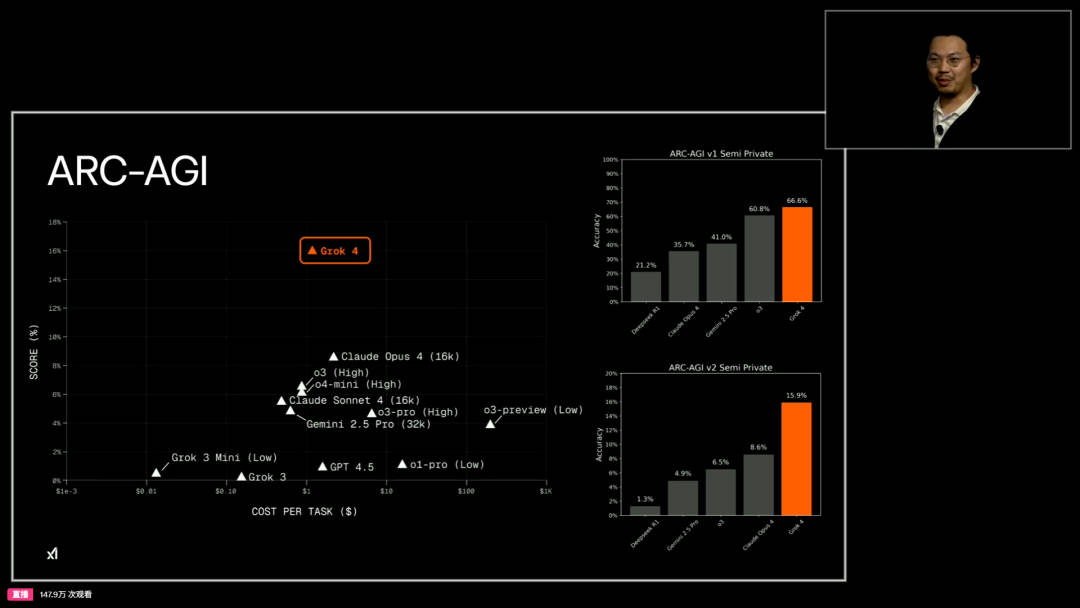图 | Grok 4 在 ARC-AGI 挑战上的表现(来源:xAI)