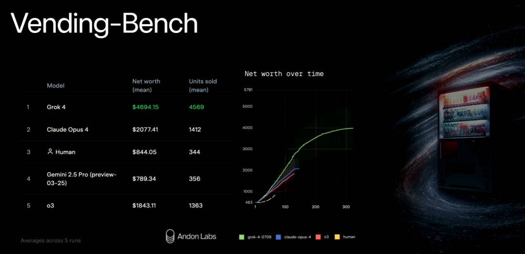 图 | Vending-Bench 测试成绩(来源:xAI)