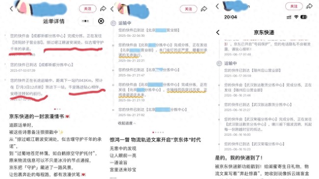 拱宸桥畔风起,古舟与车轮共赴时光之约。"、"穿越赣江的秋水长天,如孤鹜逐霞般疾驰"、“格桑花开的原野上,风马旗指引归途的方向”……近期,不少网友在社交媒体平台晒出自己的京东快递包裹信息。“京东快递请了个诗人吗”、“快递信息一下诗情画意了”、“IT男也这么浪漫”……在点赞快递服务的同时,也有不少人好奇天量的快递信息京东快递如何做到输出不同内容?自己的城市会有怎样的快递信息?