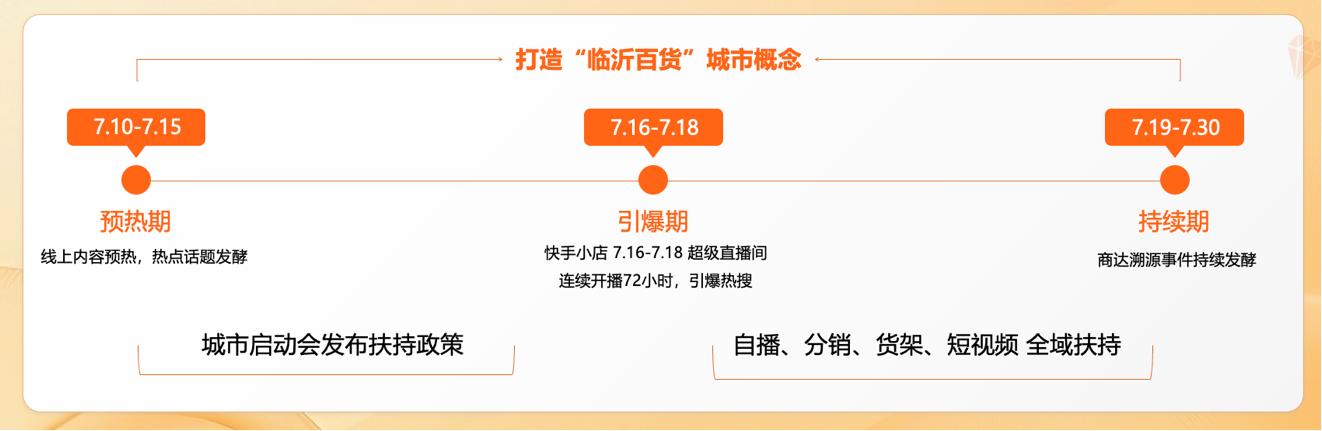 宝藏临沂项目周期将分为预热期、引爆期和持续期三个阶段。作为“宝藏小城”计划的首站,快手电商将通过招商双选会、快手小店72小时直播、商家达人溯源等系列策划,在临沂打造电商带货氛围,帮助商达成长,打造“临沂百货”的城市概念。