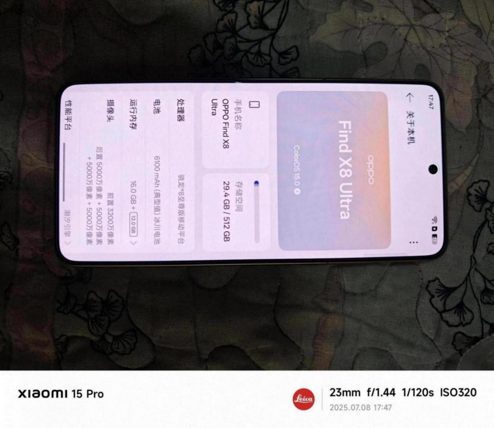 作为目前少有的顶级直屏旗舰,Find X8 Ultra 几乎把能堆的配置都堆满了——骁龙8 Gen3、2K 120Hz LTPO屏幕、超薄光学指纹、IP68防水,还有OPPO一贯优秀的做工和质感。续航不算特别强,但也不差,中度使用一天一充没问题,100W快充回血速度也够快。