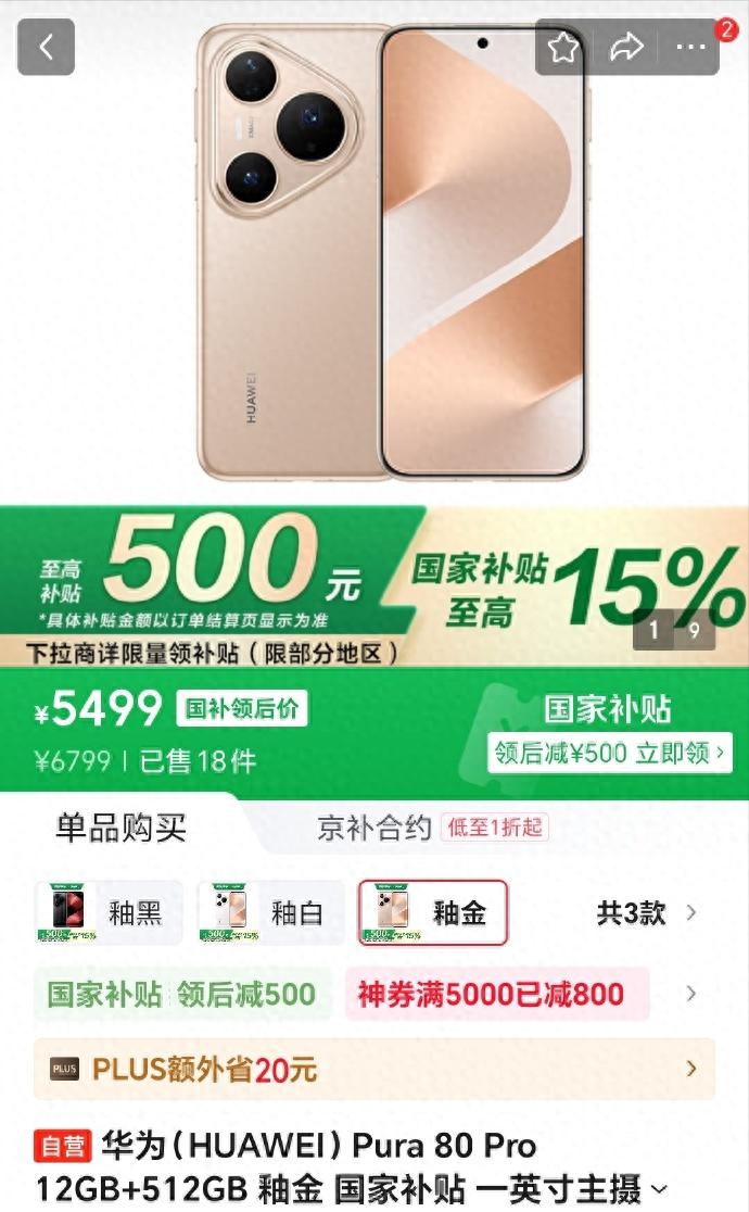 根据华为官网信息,华为Pura80 Pro/Pro+全平台直降800元,12+512GB版本从原来6969元降到6199元。这还不是最低价格,有博主爆料线下门店可以在此基础上再优惠200元,将手机价格控制在5999元享受500元国补,最低价只要5499元,相当一个月综合降价1500元左右。