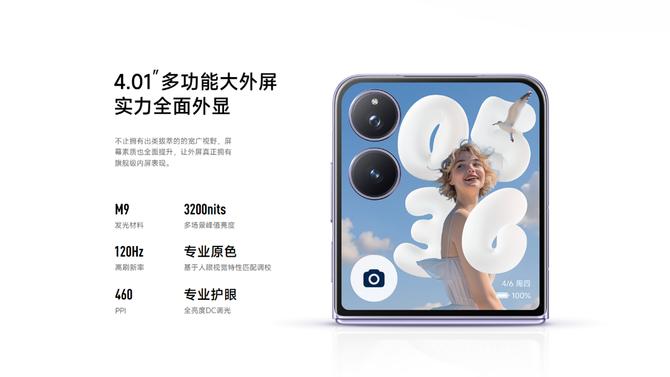 OPPO Find N5的8.12英寸内屏采用2K+分辨率LTPO AMOLED面板,拥有2100nits峰值亮度与1~120Hz动态刷新率,无论是文档阅读还是HDR视频播放都能呈现细腻画质。