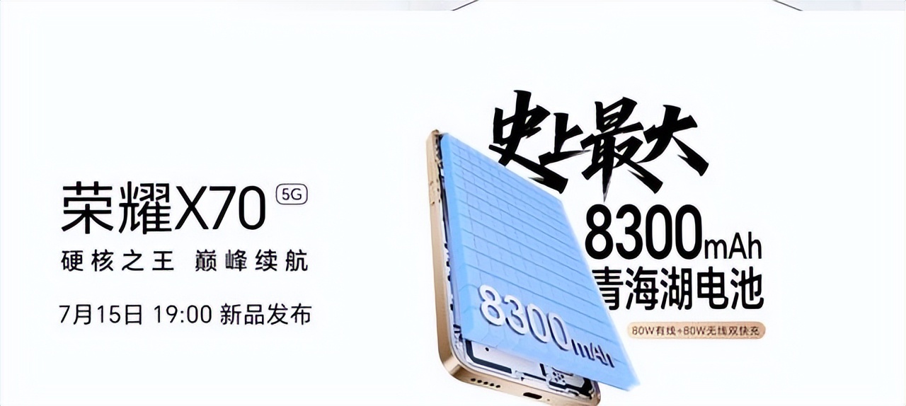 一个手机,电池能够装到8300毫安时,这是什么东西?荣耀要出的这个X70,就是这样。