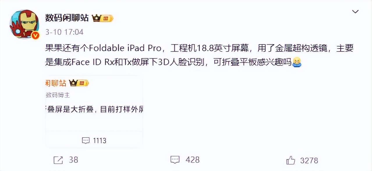 除了折叠屏iPhone之外,苹果这次还有个折叠iPad Pro。