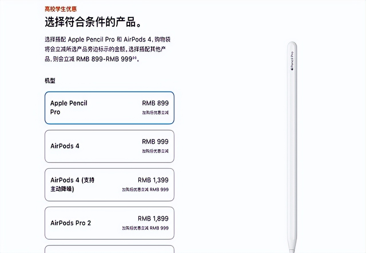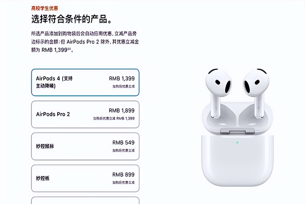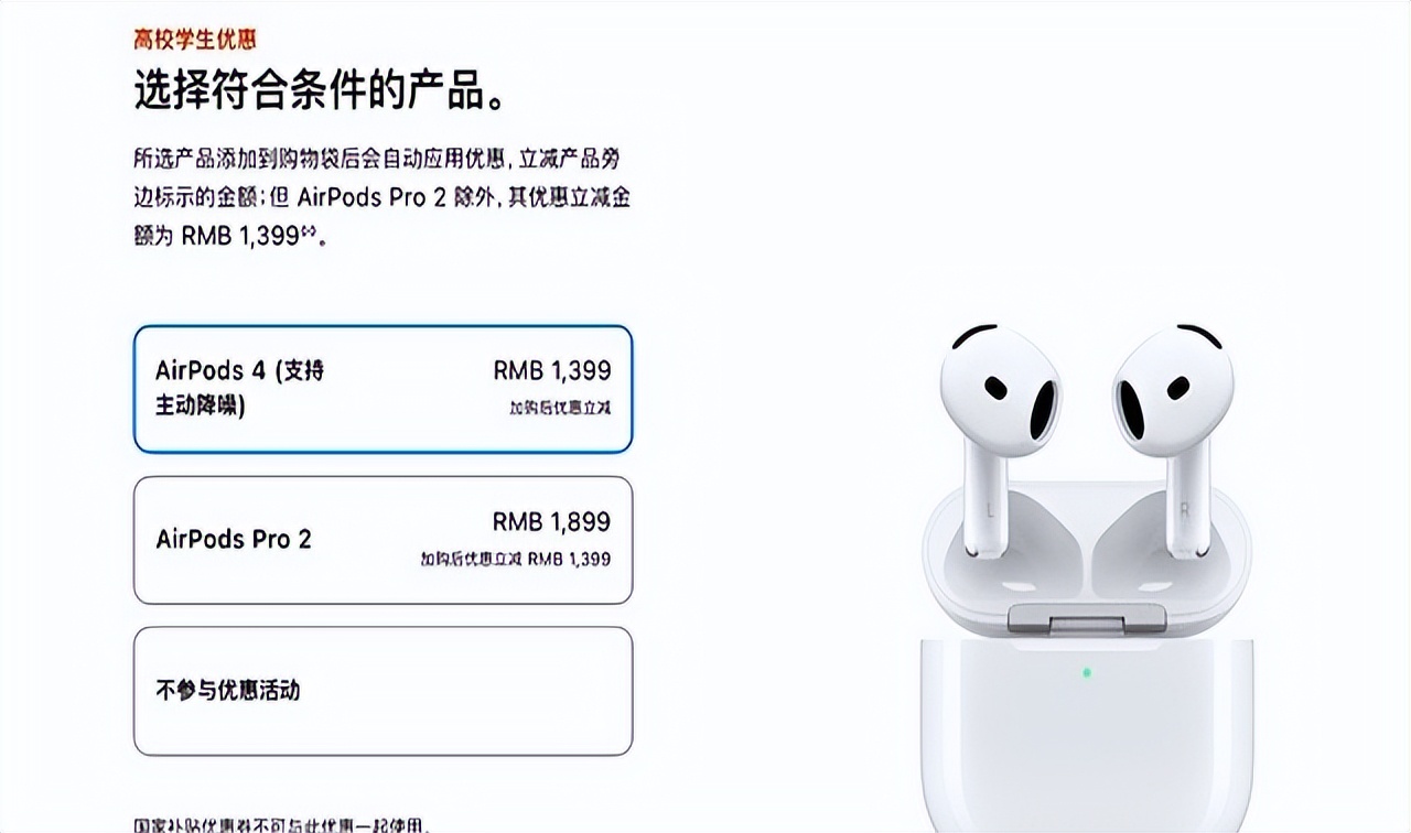 拿最便宜的iPad Air举例,官网教育价4399元送AirPods 4,想换AirPods Pro 2得补500差价。