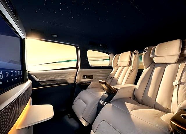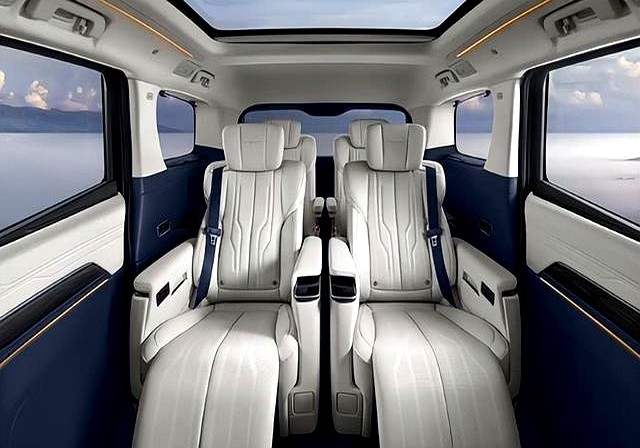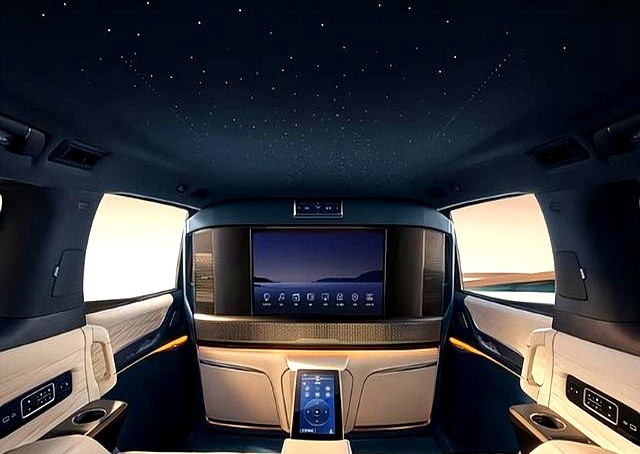 封闭前脸配竖矩阵大灯,侧面悬浮车顶配22寸大轮毂,看着比埃尔法更科幻。