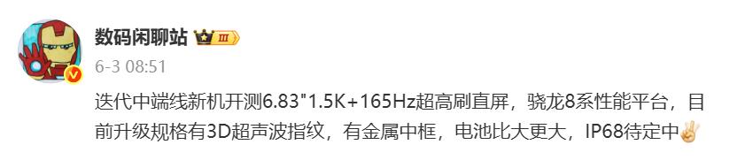 内置7800mAh大容量电池,这次在续航方面也能提升,支持100w有线充电+旁路充电技术,会配备金属中框、IP68顶级防水。