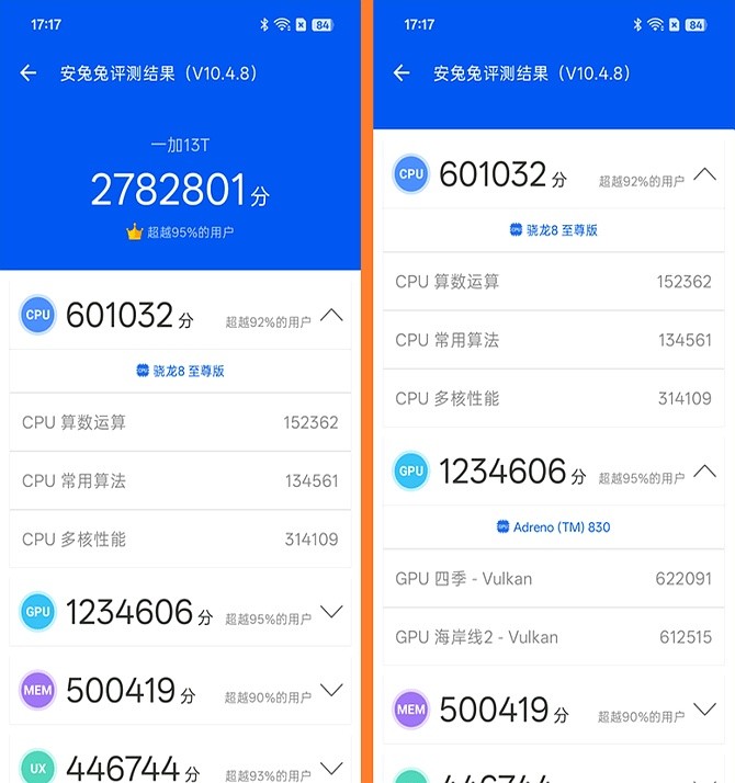 骁龙8E加16GB内存组合,安兔兔跑分236万,风驰游戏内核优化到位。