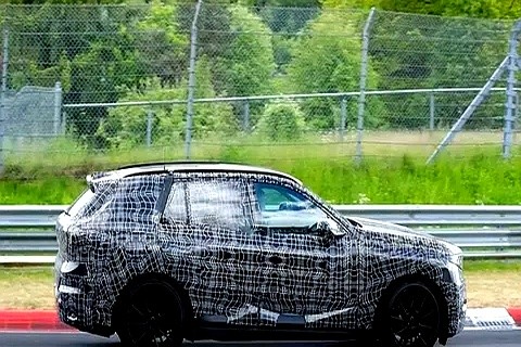 7月纽博格林赛道抓拍的全新X5彻底抛弃祖传大鼻孔,换装眯眯眼连体格栅。