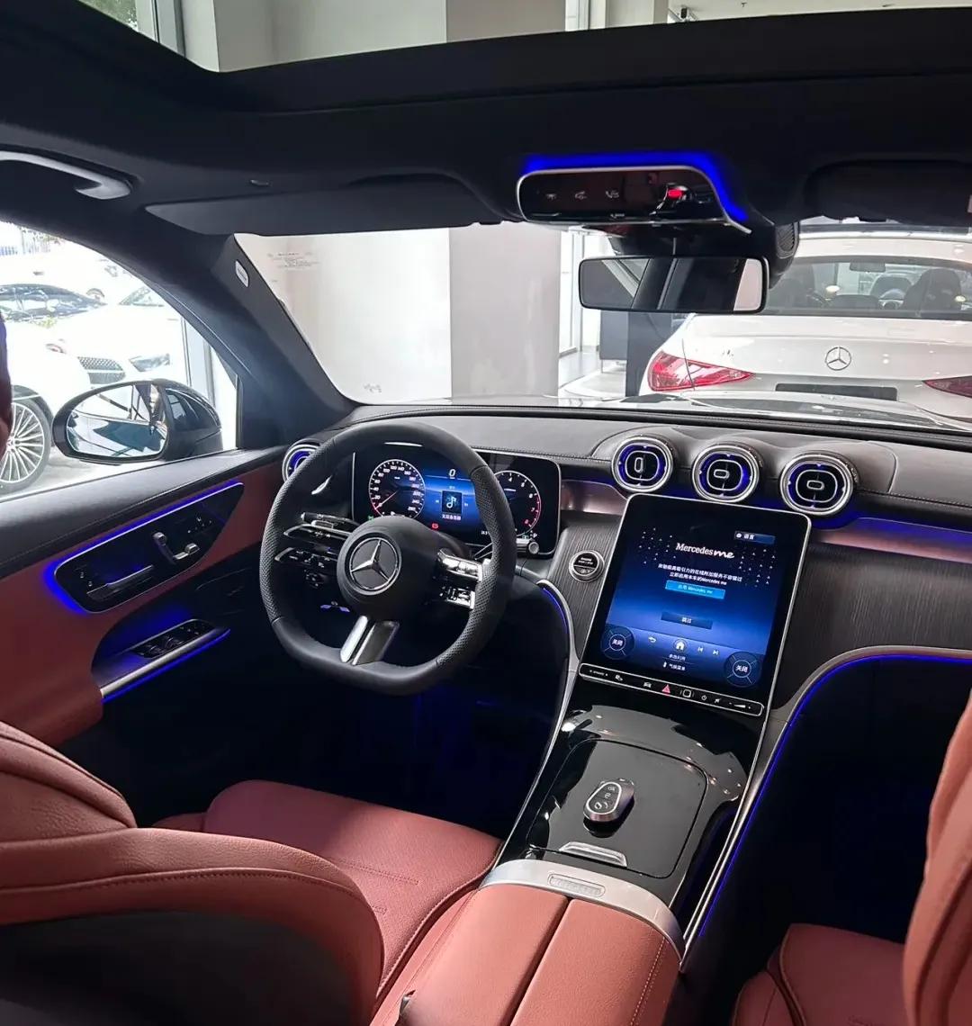 说回GLC 260本身,优点还是挺突出的。空间是真够用,我一米八的个子坐前排,头顶还有一拳多的富余,胳膊肘往门板上一搭,也不觉得憋屈。后排更不用说,翘个二郎腿轻轻松松,中间坐个人也不会觉得挤得慌,家里带老人孩子出门肯定够用。操控也顺手,方向盘不沉,打起来很灵活,在展厅那种不算宽的过道里挪车,转弯掉头都挺轻松,感觉不像这么大的车。