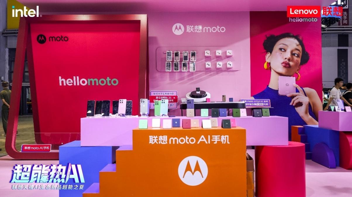 超能时尚区-联想moto孟菲斯潮牌长廊是整个展区最时尚的区域,这里展示了包括联想moto razr 60 Ultra AI元启、联想moto razr 60 Pro AI元启、联想moto razr 60、联想moto edge 60 Pro AI元启、联想moto edge 60、联想moto edge 60s以及联想moto g100 Pro在内的多款智能手机。联想是手机行业唯一与Pantone潘通达成全球合作的品牌,联想也将潘通高定色系引入AI手机,让现场观众一睹联想moto家族领先的科技时尚风貌。特别是联想刚刚揭晓的三款新配色,包括联想moto razr 60“星际陨黑”、联想moto edge 60s“夏日乌梅”以及联想moto edge 60 Pro“椴影胡桃”,更是惊艳全场。