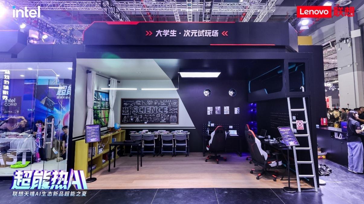 学生超能次元区-次元宿舍/次元教室采用的是令人耳目一新的场景化展示方式。在这里,观众体验到了小新、拯救者、YOGA等AI平板如何协助活力四射的学生们好好学、狠狠玩。无论是课堂笔记、翻译,还是游戏,联想AI平板都能够提供更优秀的体验。
