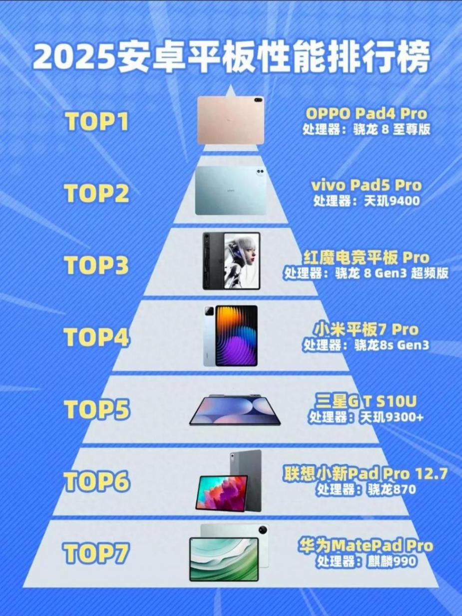 2025安卓平板性能金字塔曝光!7大机型混战,游戏党、办公族、性价比控狂喜