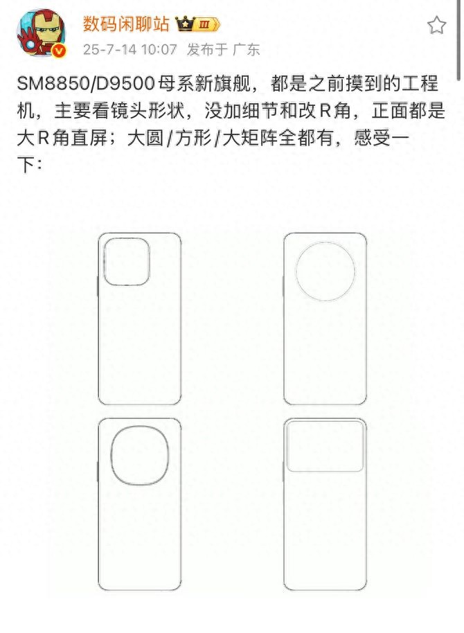 根据博主 @数码闲聊站 的帖子,其发布了四张在此之前摸到的工程机简绘图。评论区也是纷纷猜测,神秘的右下角机位,就是小米16 Pro的轮廓简图。