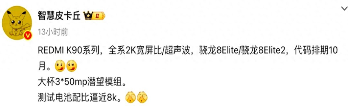 首页 > 原创文化 > 原创文化 > 红米 K90 系列配置曝光,预计 10 月发布
