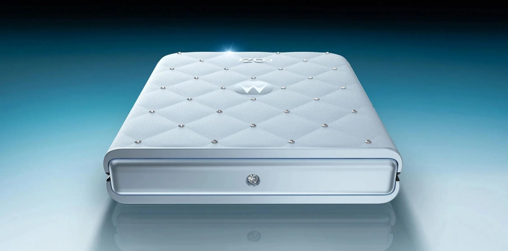 从渲染图来看,这款手机仅在外观上做了细微调整,手机背面采用了柔软的仿皮革或织物材质,并镶嵌有小颗水晶。此外,在铰链附近、外屏上方还额外镶嵌了三颗水晶。