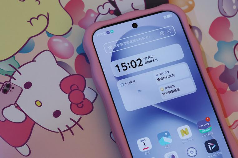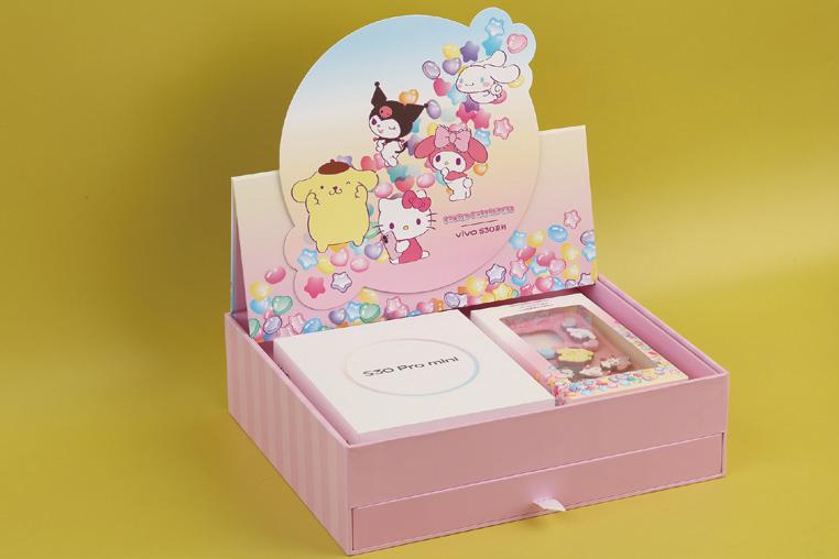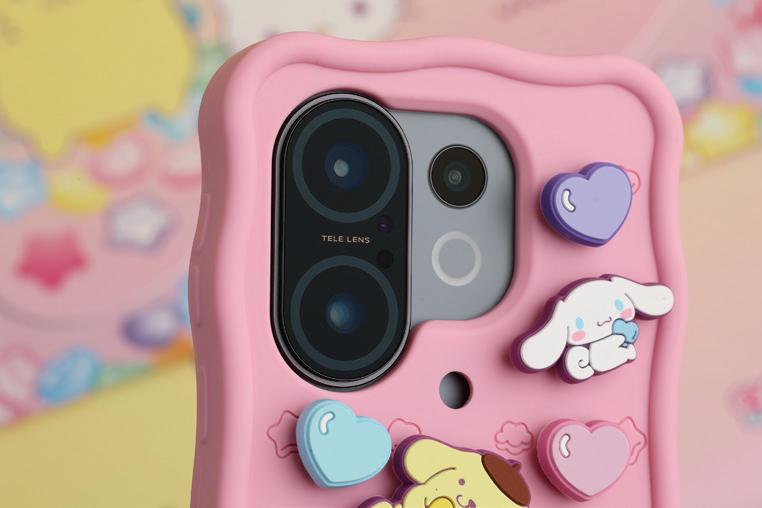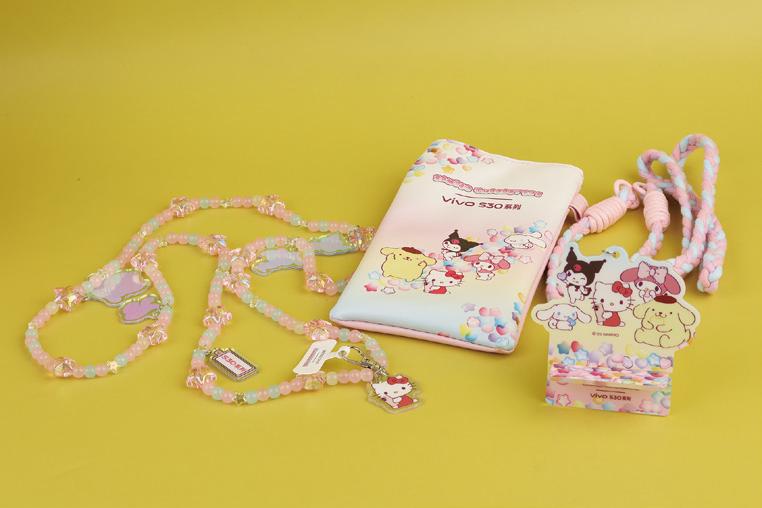 这款手机不仅拥有良好的质感和手感,它丰富又独特的周边配件和配色更是让人心动。我体验的是与三丽鸥联名的限定款,仅是包装盒就已经把我这个三丽鸥粉丝给“拿捏得死死的”!Hello Kitty、布丁狗等IP角色俏皮地出现在粉嫩的包装盒上,打开后除了手机,还有附赠的三丽鸥家族联名手机壳、手机包、手机链和手机支架等,这些周边赠品不仅实用,还充满少女心,可以根据自己的喜好随意装扮,日常使用手机也能仪式感满满!
