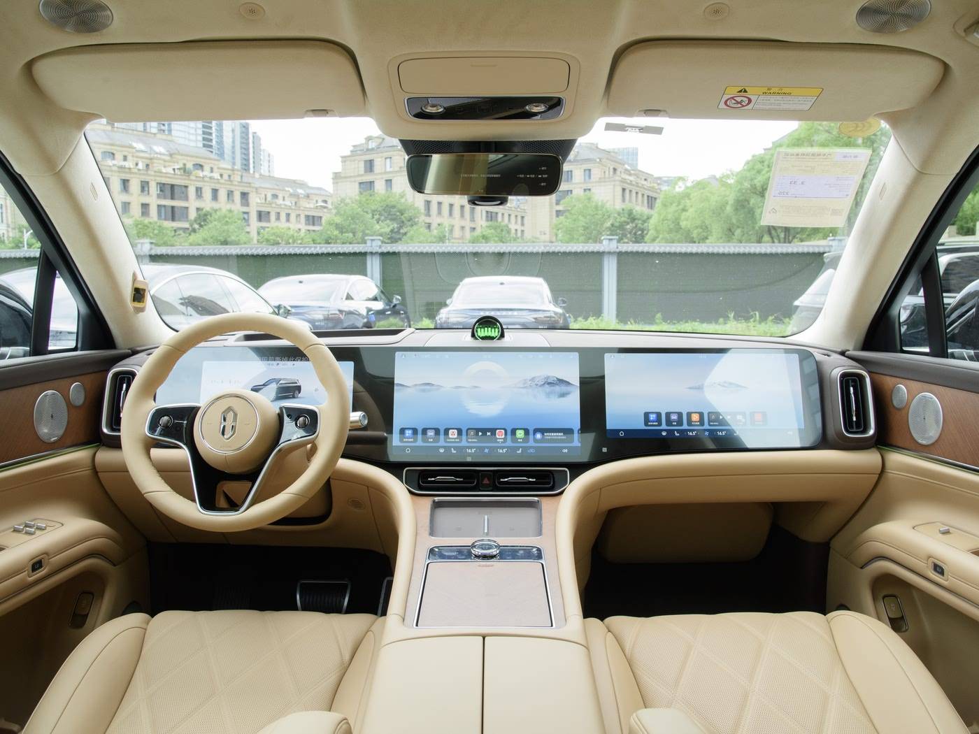 进入车内,问界 M9 的内饰尽显豪华与科技氛围。大量高档材质的运用,如顶级的 Nappa 真皮座椅、细腻的木纹装饰以及金属质感的按键,营造出舒适且奢华的驾乘环境。车内配备了超大尺寸的中控屏、副驾娱乐屏以及后排的独立娱乐系统,打造出全方位的智能交互体验。华为鸿蒙智能座舱系统更是为其增色不少,操作流畅,功能丰富,智能语音助手能够精准识别并执行各种指令,让驾驶变得更加便捷和有趣。