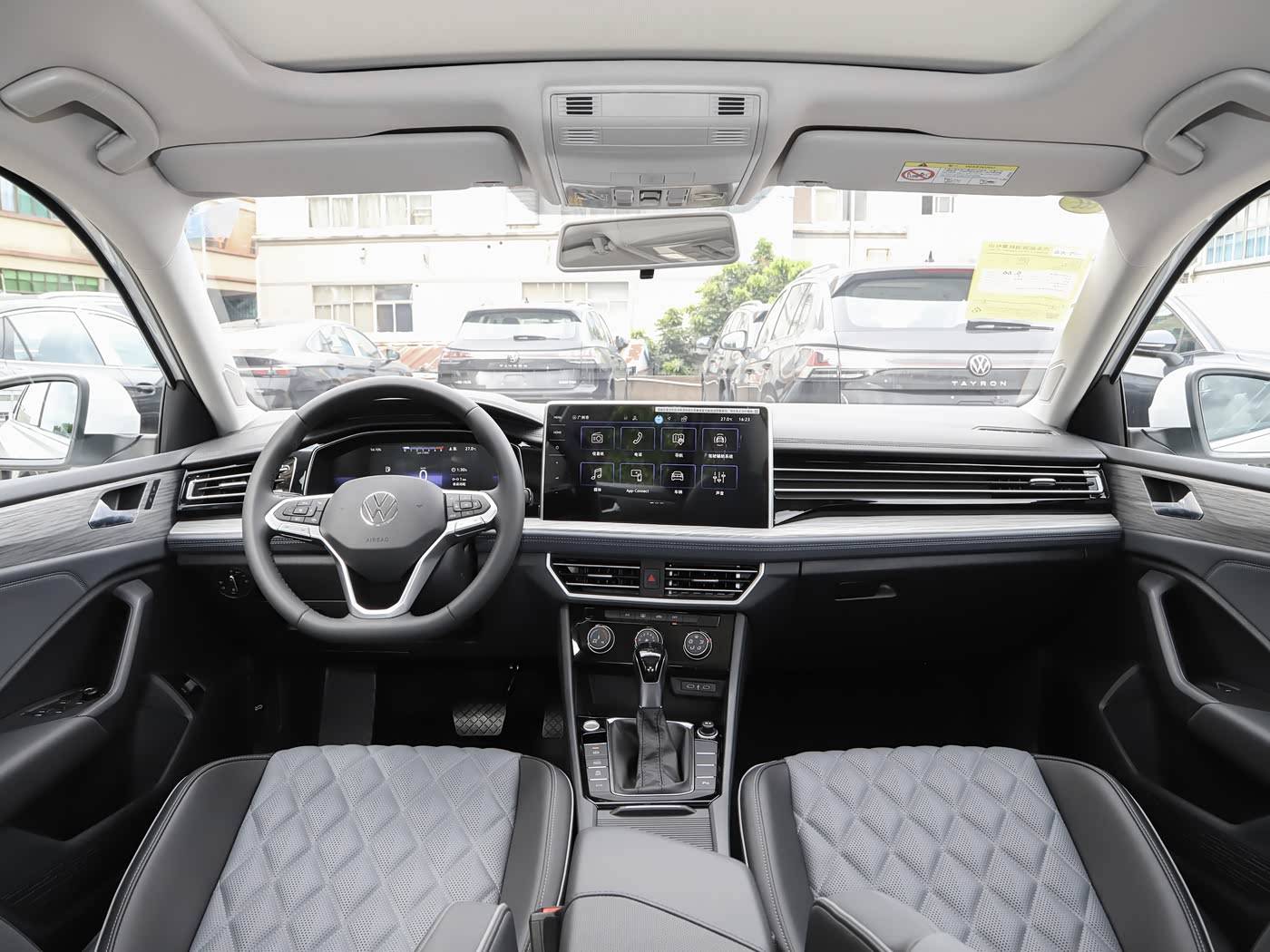 进入车内,中配速腾的内饰主打实用与舒适。中控台布局规整,大面积软性材质包裹搭配细节处的镀铬饰条,提升了车内质感。10.3 英寸全液晶仪表盘与 12 英寸中控屏组成的双屏系统,显示清晰且操作流畅,支持 CarPlay 和 CarLife 手机互联功能,日常导航、听歌等操作便捷顺手。三辐式多功能方向盘握感舒适,集成了音量调节、定速巡航等常用按键,方便驾驶者盲操。座椅采用皮质材质包裹,主驾支持 6 向手动调节,靠背和坐垫的填充软硬适中,即使长途驾驶也能保持较好的舒适性。后排腿部空间宽敞,满载三人也不会显得局促,地台中央凸起较低,进一步提升了中间乘客的乘坐体验。