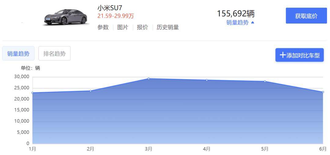 排名榜单第六至第十名的是银河星耀8、小鹏P7+、日产N7、长安启源A07、享界S9,6月销量分别为8439辆、6700辆、6189辆、5013辆、4215辆。截至上半年,小鹏P7+、长安启源A07、银河星耀8、日产N7以及享界S9累计销量分别为44576辆、28767辆、20161辆、9888辆和9703辆。