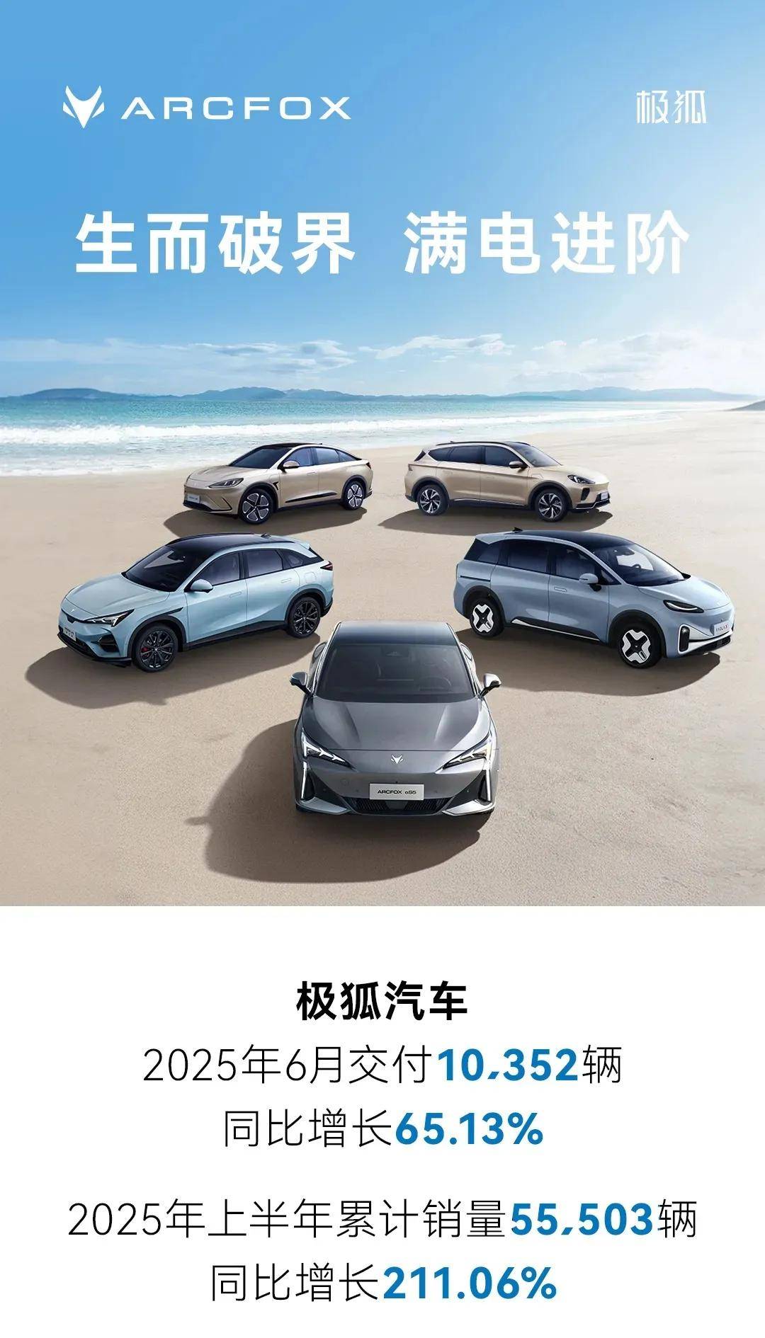 进入7月,北汽新能源公布了6月销量成绩单,整体交付14560辆,同比增长140.65%。上半年累计销量达67152辆,同比增长139.73%,其中极狐为55503辆、同比增长211.06%,极狐销量占到总体销量八成以上。