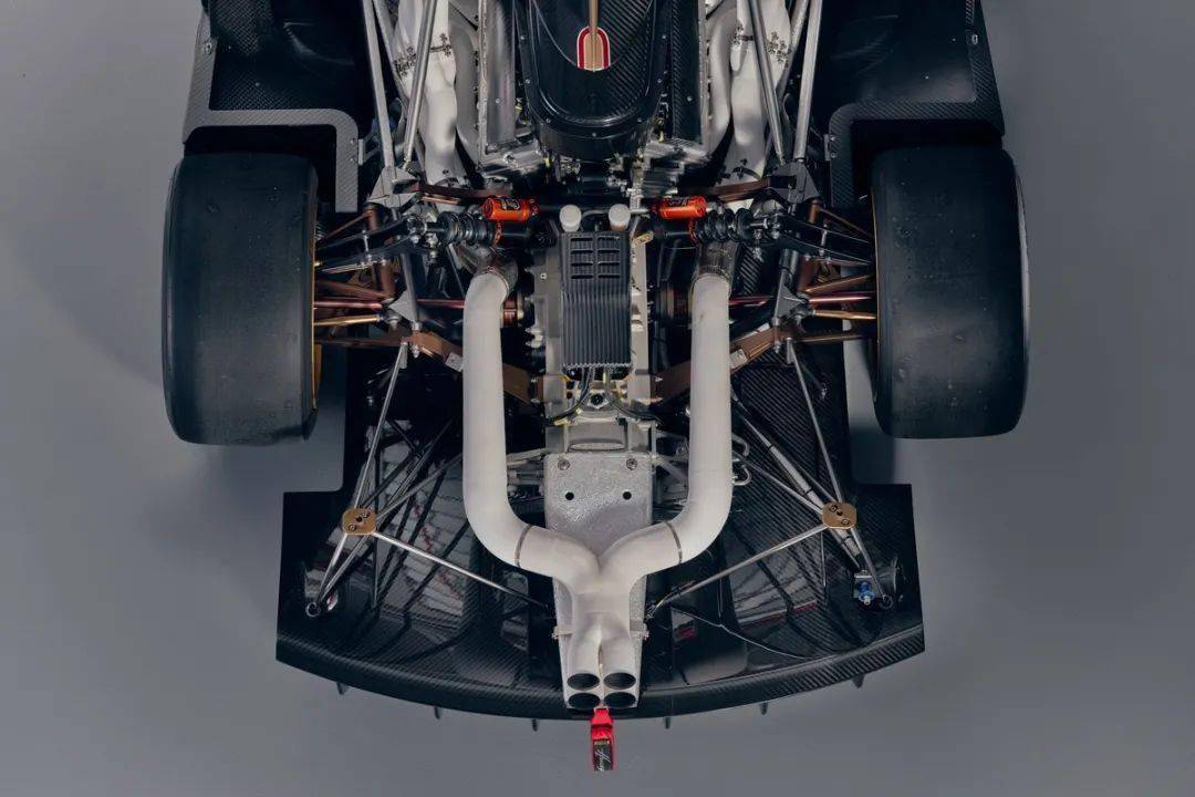 帕加尼Huayra R的四出排气系统采用陶瓷涂层英高镍合金(Inconel 625/718),厚度仅为普通车型的1/3,模拟90年代F1赛车的狂暴声浪(可选装消音器满足赛道噪音限制)。帕加尼Huayra R采用碳钛合金单体车舱结构,整合座椅的碳纤维单体壳,采用Carbo-Titanium HP62-G2等航空材料,抗扭刚性提升16%,抗弯刚性增加51%,整车干重仅1,050公斤。