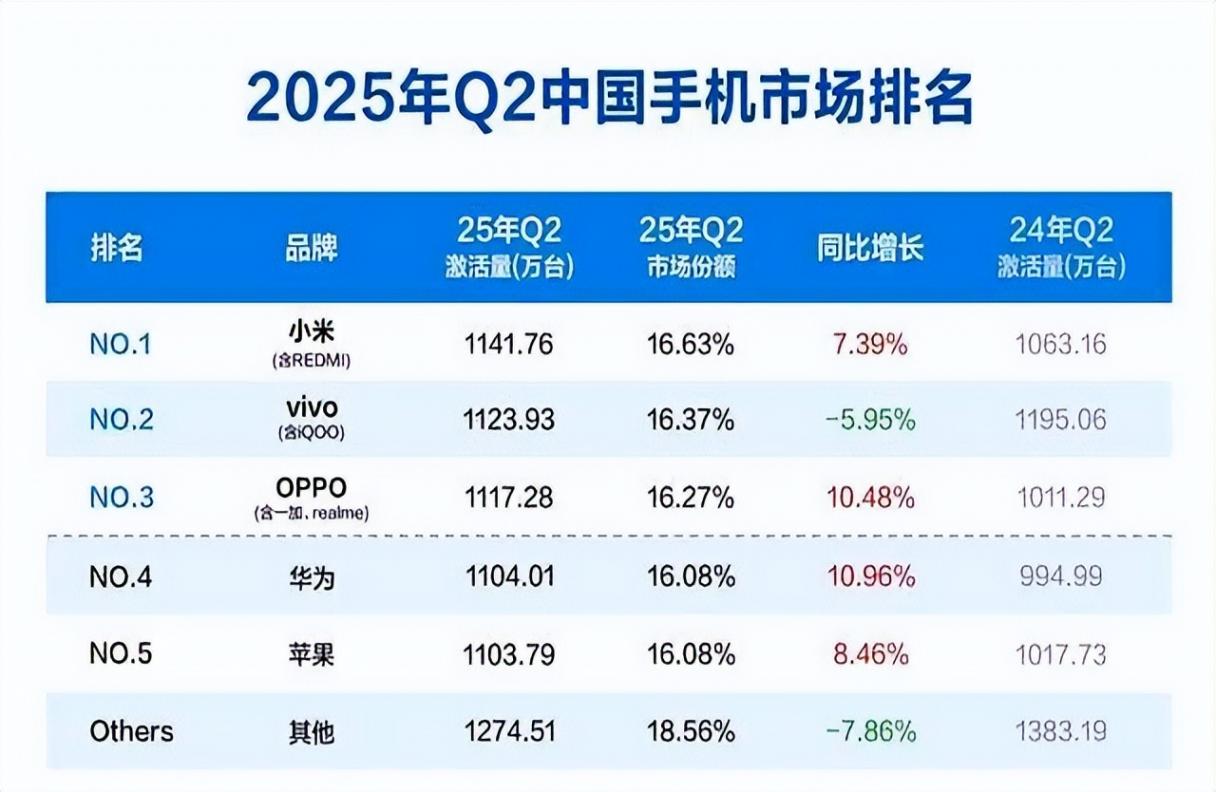 6月29日国内手机激活量榜单出炉,小米靠1141.76万台登顶,1999元的红米新机直接把苹果华为挤到身后。