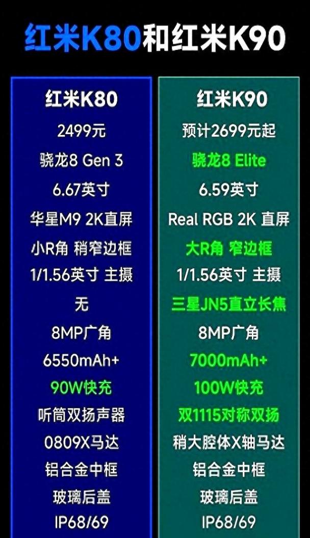 红米K90参数卷疯了,2499起金属边框焊死中端机天花板。