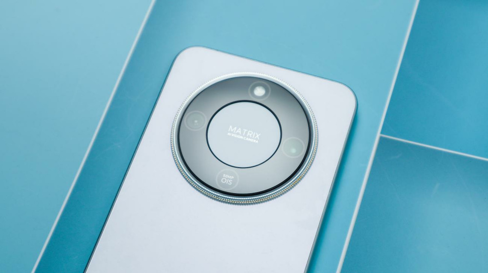 后盖采用圆形DECO设计,相机周围采用一圈钉纹装饰,周边为镜头和闪光灯排布,中间带有MATRIX的字样,后盖为白色磨砂处理,不过上面带有一些细节纹理装饰,看上去也十分具备设计感。