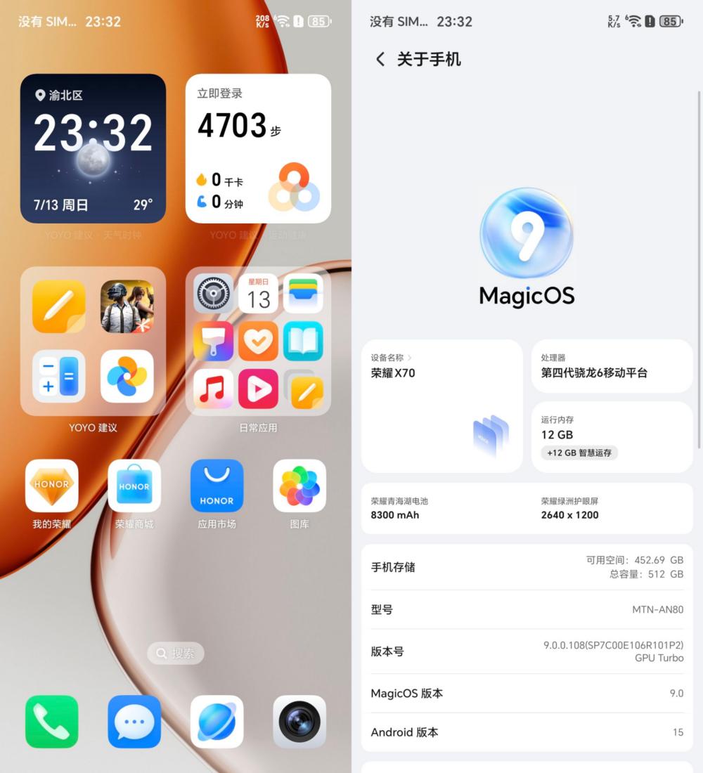 荣耀X70搭载骁龙6 Gen4平台,优化上还是比较显著的,首先虽然是款中端机,主打耐用,但在系统上面完全没有阉割。