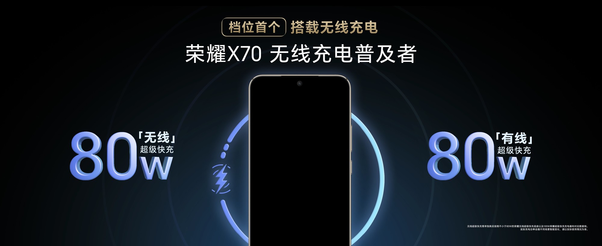 除了大容量电池,荣耀X70在充电技术方面同样展现出开拓精神。它率先在同档位机型中搭载无线充电技术,支持80W有线及80W无线双快充。这一配置使其成为档位首款具备有线加无线反向充电能力的机型,充电能力堪比专业充电宝,无论是为其他设备应急充电,还是自身快速回血,都能轻松应对。