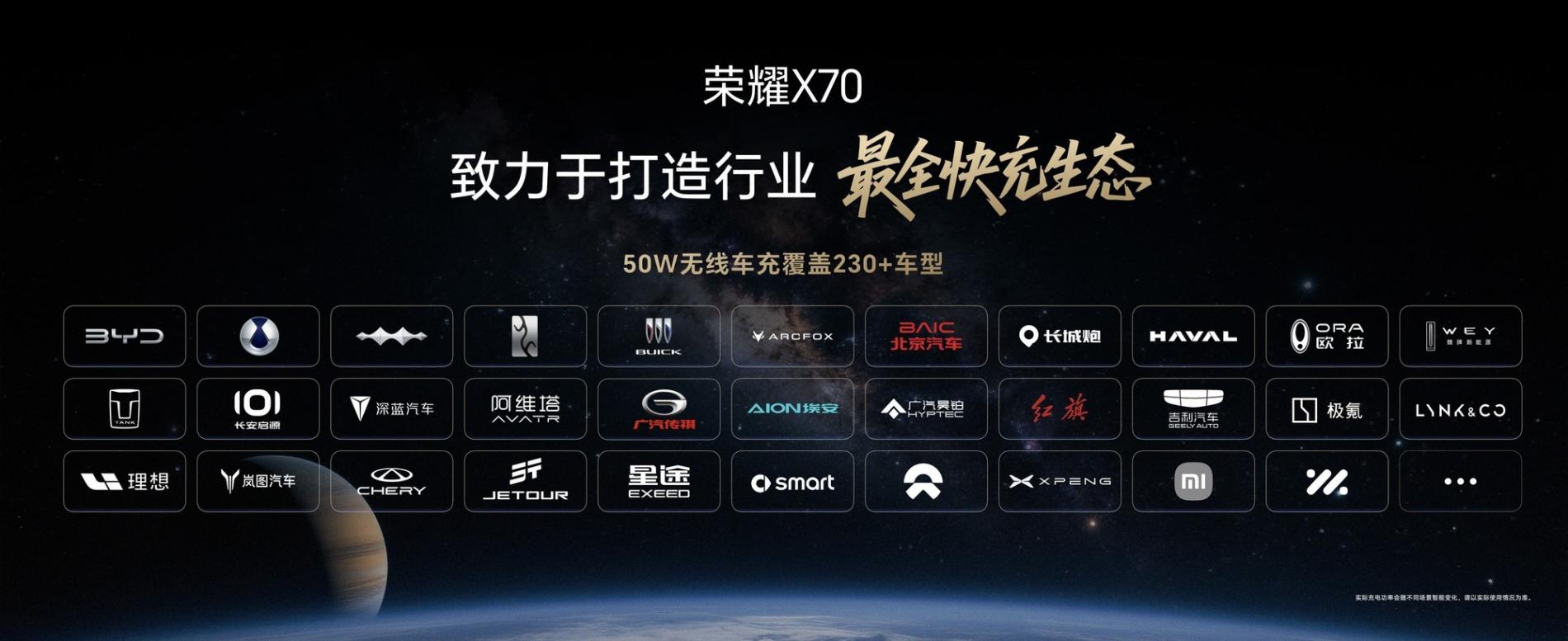 此外,荣耀X70的无线充电生态也十分完善。其50W无线车充覆盖了超过230种主流车型,无论用户驾驶何种品牌的汽车,都能享受到便捷的无线充电服务。从超大容量电池的配备,到创新性的充电设计,再到全面完善的快充生态,荣耀X70全方位构建了一套完整的续航解决方案,重新定义了手机的续航标准。