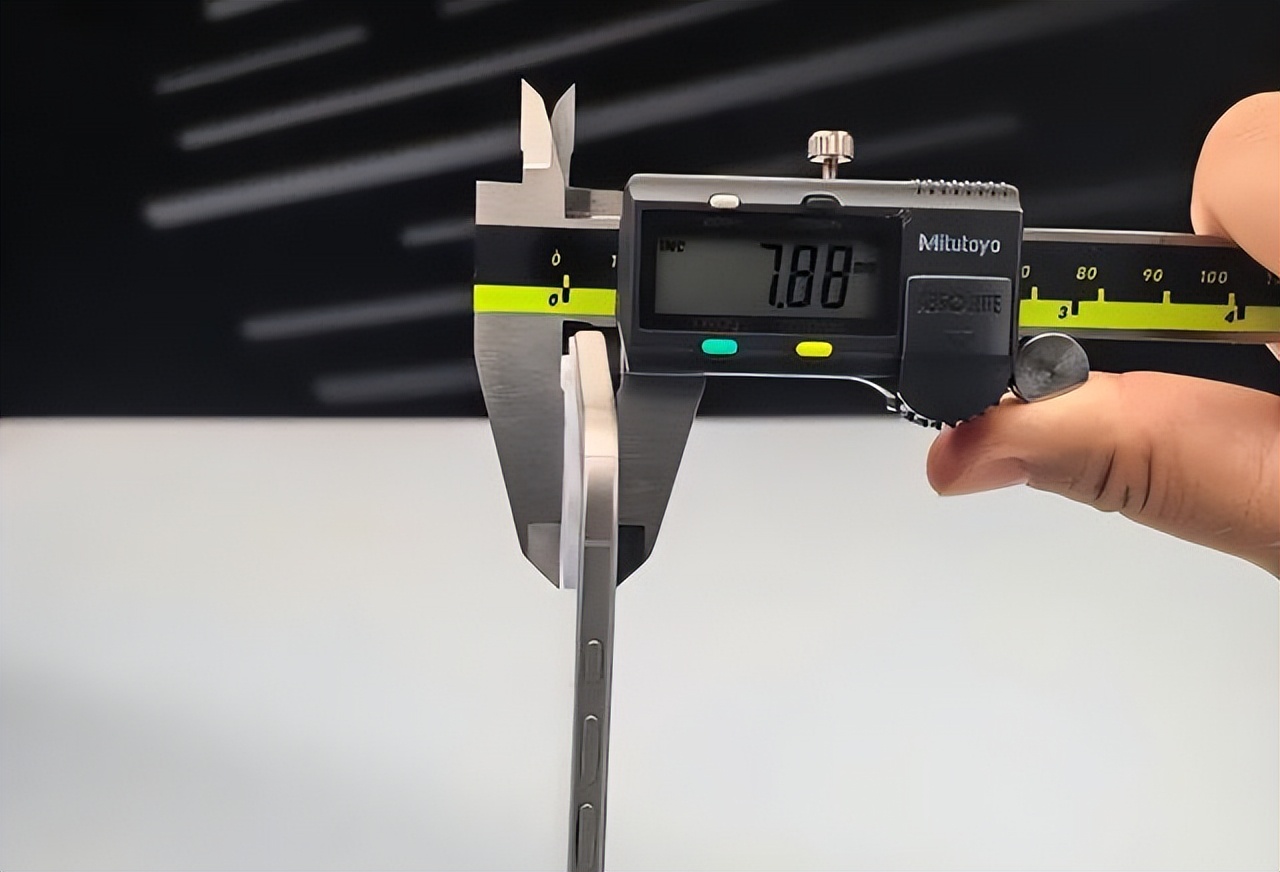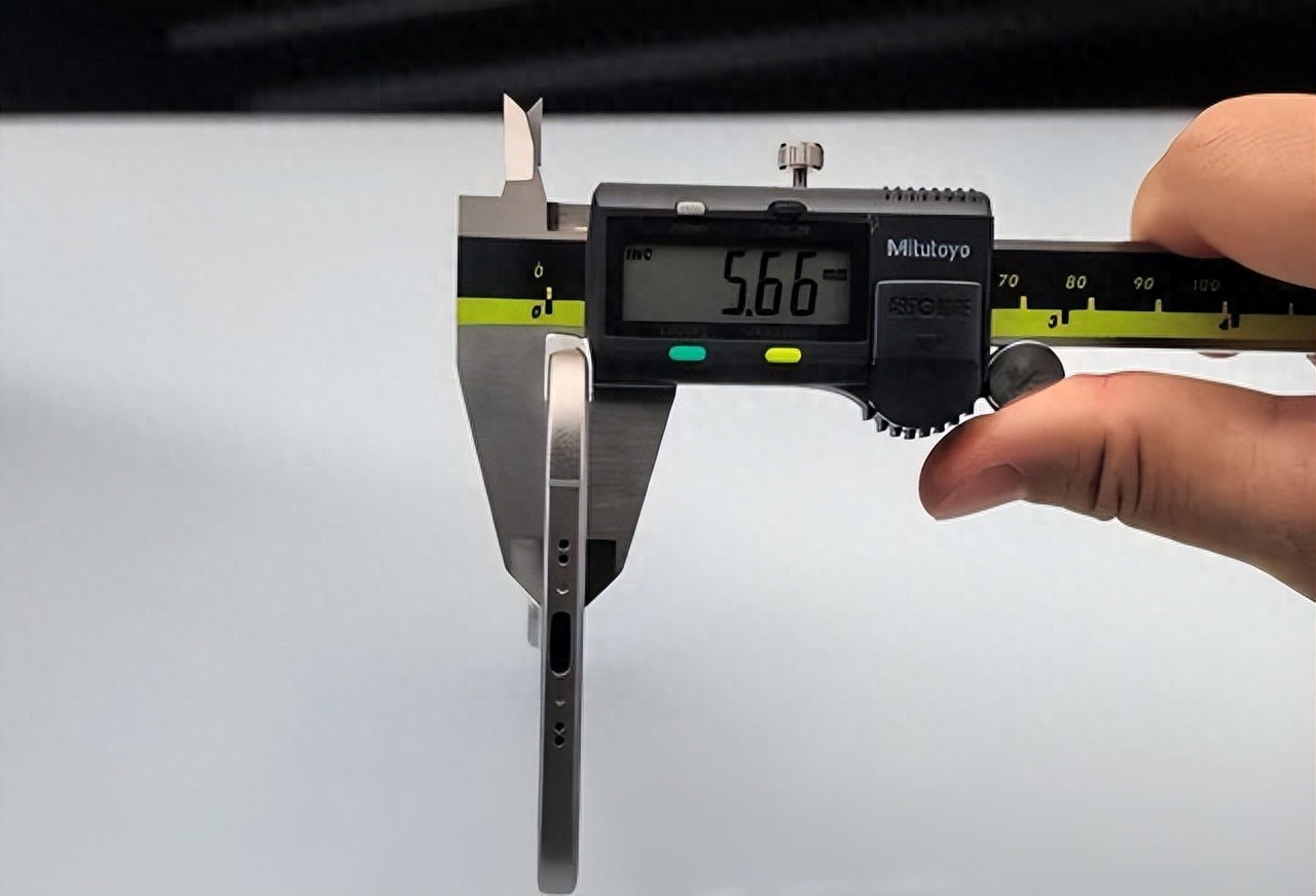 手机的厚度,还有别的说法。如果测量的时候,把相机凸起的部分也算上,厚度就不是5。66mm了。连着相机模组的底座一起量,厚度是7。88mm。如果再把那个伸出来的摄像头也一起算上,那么厚度就变成了10。44mm。这个10。44mm的厚度,和5。66mm的厚度,差了很多。一个手机,最薄的地方和最厚的地方,厚度差了快一倍。