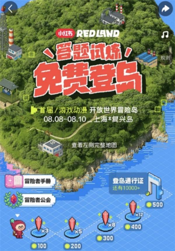 为了让更多爱好者免费参与这场盛会,自7月16日起,用户可通过小红书站内线上答题或组队通关的方式,赢取宝贵的登岛资格。