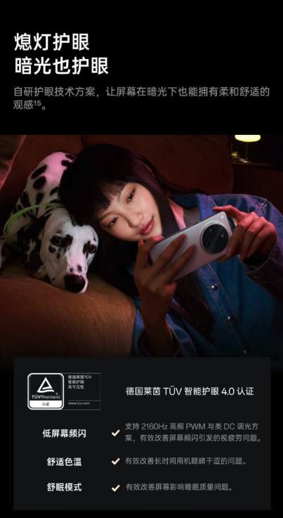 OPPO Find X8 Ultra支持2160Hz高频PWM调光,在屏幕亮度低于70nits时自动启用,有效减少频闪对眼睛的刺激;同时融合类DC调光方案,通过算法重构PWM波形,实现全亮度区间SVM值均<0.4,达到莱茵无频闪认证AA+等级,显著降低长时间使用导致的视疲劳。