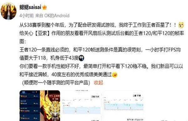 风扇能智能温控,实测王者荣耀帧率120.36fps,和平精英119.76fps,长时间游戏不降频。