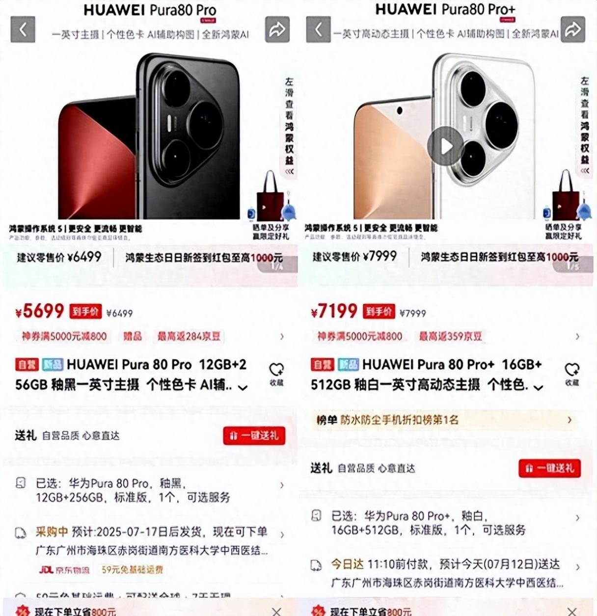 华为Pura 80 Pro刚上市不到一个月就猛降800块,电商平台直击5699起,竞争太卷逼出这波操作?
