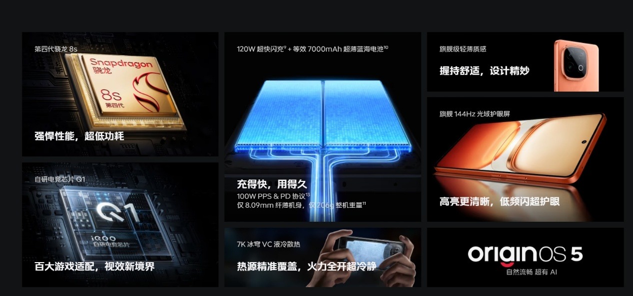 此外,该机内置7000mAh大电池并支持120W超快闪充,后置5000万像素OIS主摄,整机兼顾性能、续航和影像,1999元起的售价使其成为2000元档极具竞争力的性能旗舰。