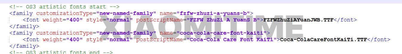 另外IT之家注意到,代码还透露小米澎湃 OS 3 将在锁屏样式中新增两种字体:FZFW ZhuZi A YuanS 和 Coca Cola Care。