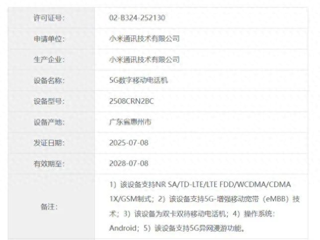 最新消息说,红米15C 5G版本已经在国内入网,设备型号为2508CRN2BC!