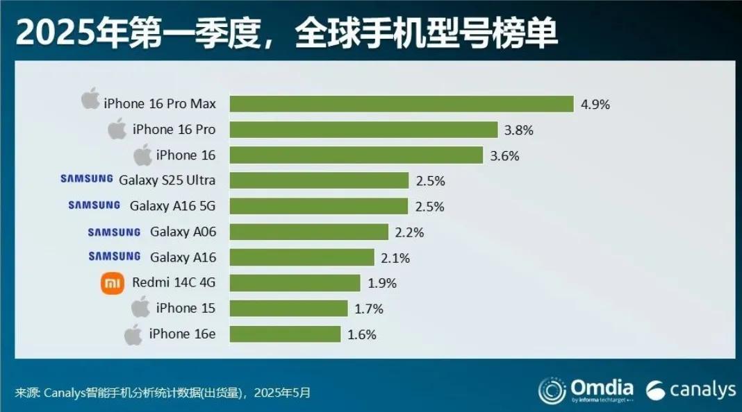 话说,红米14C登顶2025 Q1全球手机销量前十(Counterpoint数据)!而且是前十中唯一国产机型。