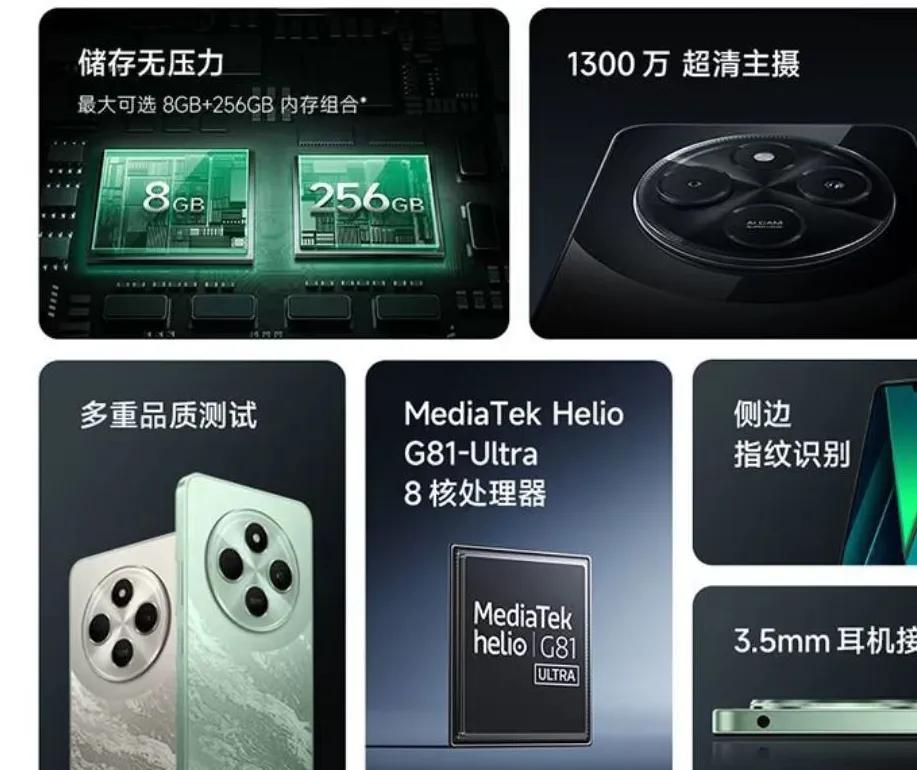 其他的话,侧边指纹,3.5毫米耳机孔、内存卡扩展等,搭载澎湃OS 系统。