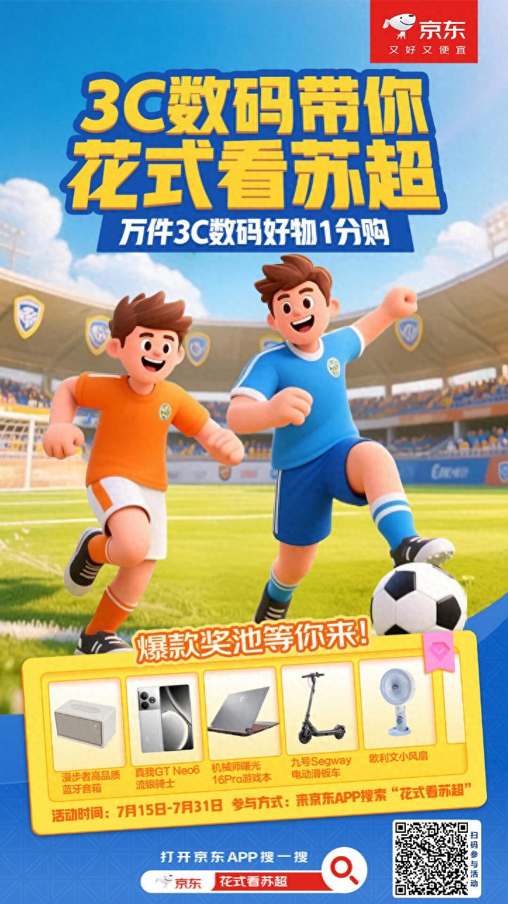 即日起,上京东购买苏超观赛好物,解锁更多专属福利。这个夏天,让京东3C数码陪你一起,为苏超呐喊,为热爱加冕,共同见证江苏足球的辉煌时刻!