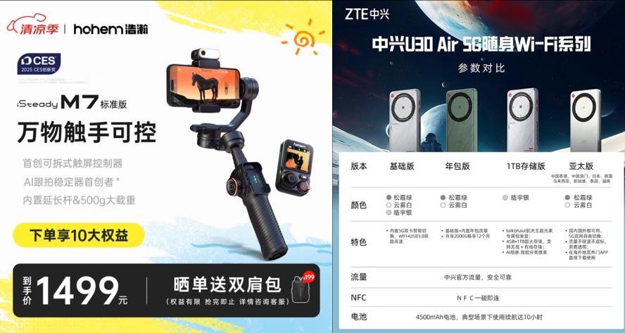 亲临现场观赛,诸多激动人心的精彩时刻要记录和分享。京东带来浩瀚卓越M7手机云台稳定器,正交三轴防抖,即便因支持球队进球得分激动得双手颤抖,拍摄画面依然能稳如泰山。汉印Z3拍照打印一体照相机、小米米家口袋照片打印机1S等产品,更可以将精彩瞬间一键出片。而当观众想要第一时间与场外亲朋好友分享这份喜悦,为了防止场馆里网络拥堵严重、设备电量告急等状况“扯后腿”,京东还带来中兴U30Air 5G免插卡移动随身Wi-Fi、上赞SZ505G随身Wi-Fi等产品保证网络流畅;以及强大的续航保障,倍思极客充充电宝,国家3C认证,20000mAh大容量,让球迷看完苏超全场也不用担心电量不足。