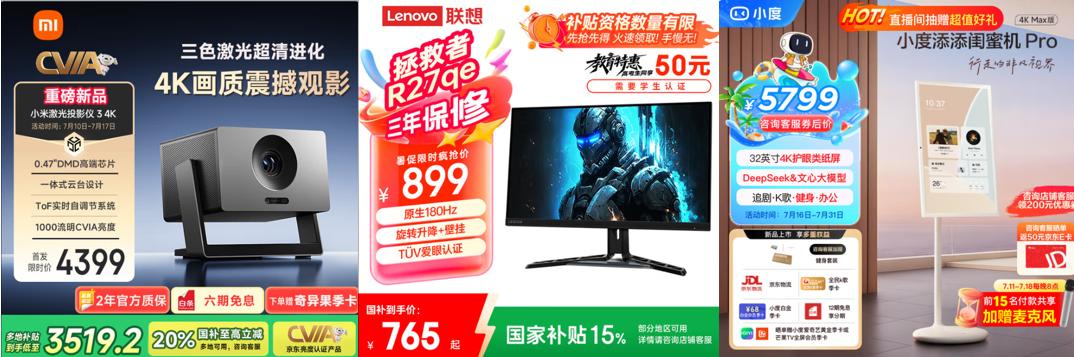 场外观赛想要身临其境的体验,视听上的沉浸感不可或缺。不论是独自观赛,还是选择与朋友“众乐乐”,硬核设备必不可少。京东3C带来小米激光投影仪3、联想拯救者27英寸2K超清电竞显示器等爆款单品,能将苏超赛场上的每一个细节都清晰呈现,为场外观众打造一个专属的“赛场”,在场外也能直接感受到现场般的热烈氛围,用户选购还可享有国家补贴等超多福利。此外,为满足居家观赛的闲适状态,上京东入手小度添添闺蜜机Pro4KMax版,32英寸的屏幕,既能高质量观赛,又能轻便移动,搭配长续航能力,随时随地开启激情观赛模式。