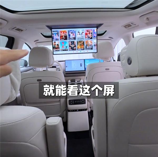后排提供的吸顶娱乐屏,虽然材质换成了LCD,但尺寸同步增大,搭配下压式的车顶,三排乘客观看体验接近平视,感觉更佳。中岛台下方为冰箱,不过依然不支持0℃以下制冷。