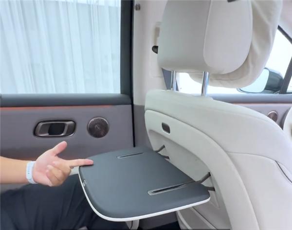前排座椅后方还为二排乘客增加了小桌板,无论是吃饭还是简单办公,都能应对。二排车门处,隐私玻璃、手动遮阳帘全都有,定位接近理想L9。