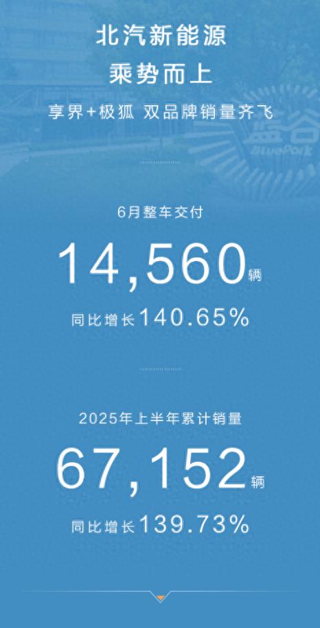 作为上半年收官之战,6月份的销量表现值得格外关注。6月份,北汽新能源实现销量14560辆,除了极狐品牌持续以破万之势稳态增长之外,交付逐渐进入爬坡期的享界也以月交付4154台的成绩,为北汽新能源的上半年增添了一抹亮色。